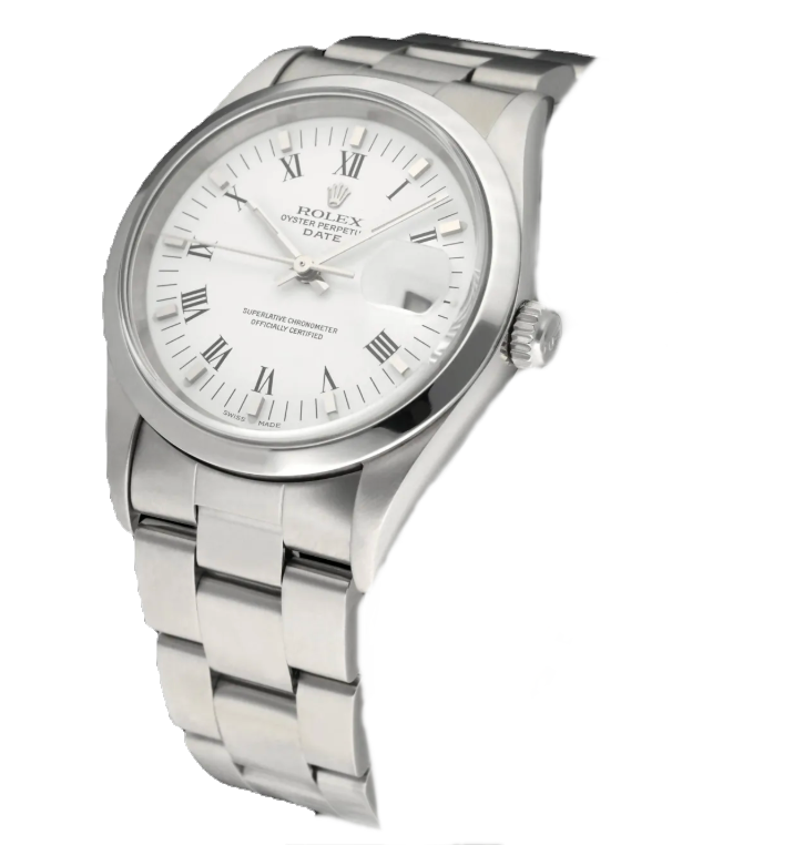 Rolex Date 34mm Oyster Perpetual 15200 Automatic White Roman Dial With Papers