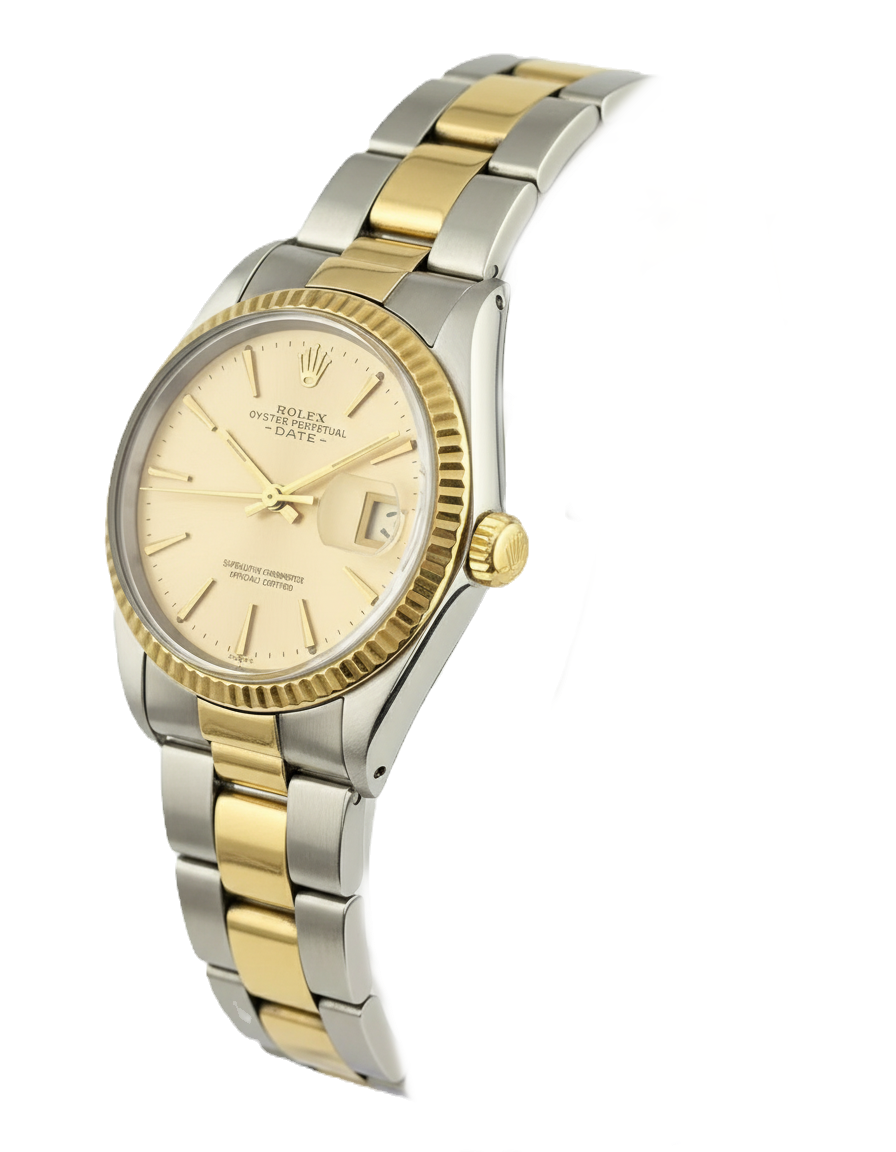 Rolex 34mm 1500 Oyster Perpetual Date 18k Yellow Gold & Steel Champagne Dial
