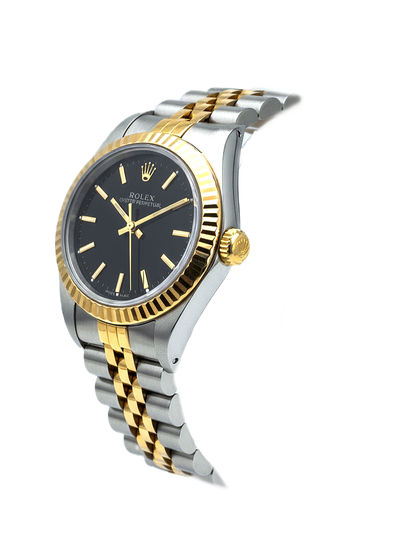 Rolex 26mm 67193 Oyster Perpetual 18k Solid Yellow Gold & Steel Black Dial Auto